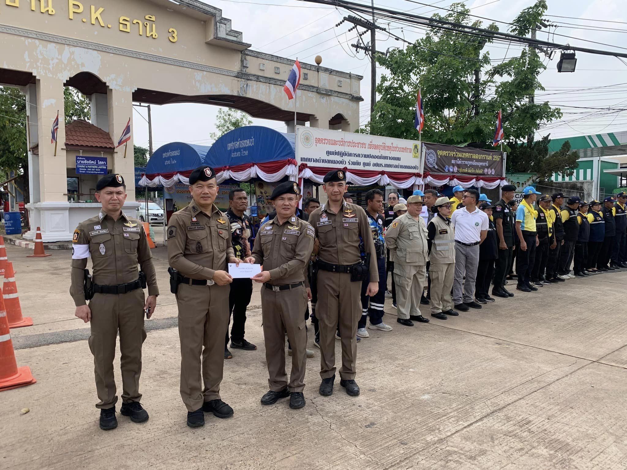 เมื่อวันที่ 12 เม.ย.67 เวลา 13.00 น.นายวันชัย คงเกษม ผู้ว่าราชการจังหวัดอุดรธานี พร้อม นายวิมล สุระเสน นายอำเภอเมืองอุดรธานี, พ.อ.ธนาวีร์ วิชาชัย รอง ผอ.กอ.รมน.ฯ โดยมี พ.ต.อ.พัฒนวงศ์ จันทร์พล ผกก.สภ.เมืองอุดรธานี, พ.ต.อ.กรณ์ ไชยเสือ ผกก.ตชด.24, พ.ต.ท.ธนพล โพธิดา รอง ผกก.จร.สภ.เมืองอุดรธานี, พ.ต.ท.ชัณรงค์ ขันทะสีมา สว.จร.ฯ ให้การต้อนรับในการตรวจเยี่ยมจุดบริการประชาชน พร้อมทั้งได้มอบน้ำดื่มเพื่อบำรุงขวัญแก่เจ้าหน้าที่ผู้ปฏิบัติหน้าที่คอยให้บริการประชาชนประจำจุดฯ ณ จุดบริการประชาชนหน้าหมู่บ้านพีเคธานี 3 ต.หนองขอนกว้าง อ.เมือง จ.อุดรธานี