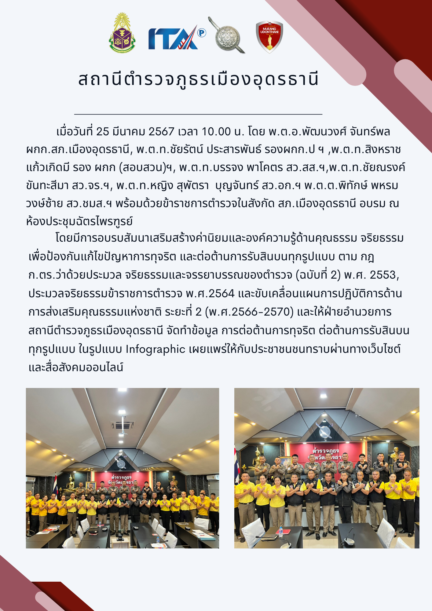 การอบรบสัมนาเสริมสร้างค่านิยมและองค์ความรู้ด้านคุณธรรม จริยธรรม เพื่อป้องกันแก้ไขปัญหาการทุจริต และต่อต้านการรับสินบนทุกรูปแบบ