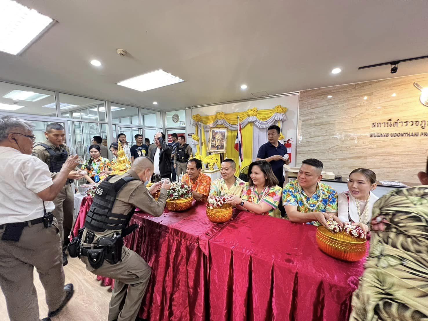 เมื่อวันที่ 11 เม.ย.67 เวลา 16.00 น.โดยการนำของ พ.ต.อ.พัฒนวงศ์ จันทร์พล ผกก.สภ.เมืองอุดรธานี, น.ส.กฤตติกา จันทร์พล ภรรยา ผกก.สภ.เมืองฯ,พ.ต.ท.ดิษฐวัฒน์ ถาวรสินพงศ์ ปรก.รอง ผกก.(สอบสวน)ฯ , ,พ.ต.ท.ธนพล โพธิดา รอง ผกก.จร.ฯ , พ.ต.ท.ชัยรัตน์ ประสารพันธ์ รอง ผกก.ป.ฯ สภ.เมืองอุดรธานี จัดกิจกรรม สรงน้ำพระ รดน้ำขอพร ตามประเพณีสงกรานต์ 2567 โดยมี นายวิวรรธน์ ธนากิจพุฒิพงศ์ ประธาน กต.ตร.ฯ พร้อมคณะ ข้าราชการตำรวจทุกสายงานร่วมกิจกรรมในครั้งนี้ ณ อาคารที่ทำการ สภ.เมืองอุดรธานี