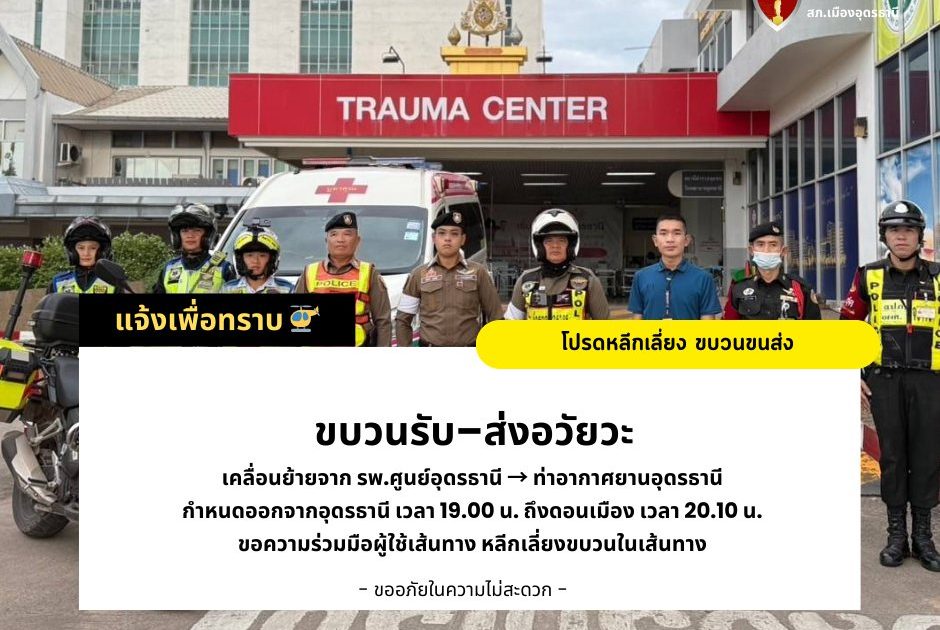 โปรดหลีกเลี่ยงเส้นทาง ขบวนรับ–ส่งอวัยวะ