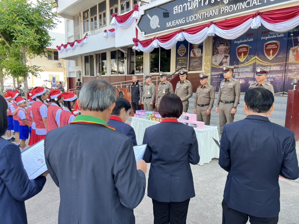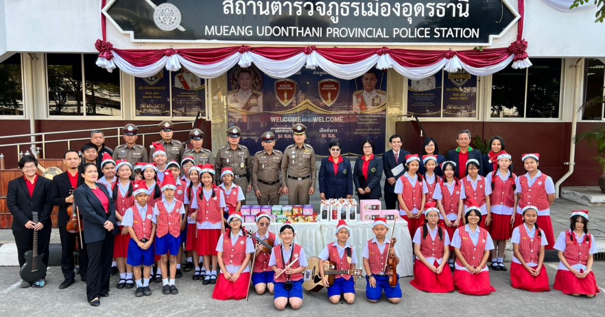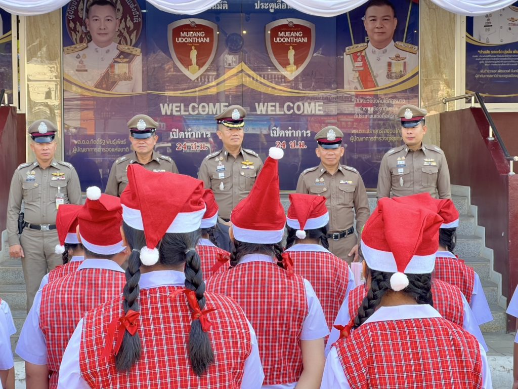 เมื่อวันที่ 23 ธ.ค.67 เวลา 11.00 น. โดยการอำนวยการของ พล.ต.ต.สรรธาน อินทรจักร์ ผบก.ภ.จว.อุดรธานี พ.ต.อ.พัฒนวงศ์ จันทร์พล ผกก.สภ.เมืองอุดรธานี ข้าราชการตำรวจในสังกัด พ.ต.ท.ผลิตอรัญ บุญมาตุ่น รอง ผกก.(สอบสวน)ฯ, พ.ต.ท.นัทธกานต์ วรรณพันธ์ รอง ผกก.(สอบสวน)ฯ, พ.ต.ท.นิวัตร กุลศรี รอง ผกก.(สอบสวน)ฯ, พ.ต.ต.นรุตม์ ศิริกัณหา สวป.ฯ ร่วมต้อนรับคณะผู้บริหาร ครูและนักเรียนโรงเรียนคริสเตียนวิทยา เข้าร้องเพลงอวยพรในวันคริสต์มาส และต้อนรับปีใหม่ 2568 โดยสมาคมแม่บ้าน น.ส.กฤตติกา จันทร์พล ภริยาท่านผู้กำกับการได้จัดเตรียมของขวัญมอบให้แก่คณะครูและนักเรียนทุกคน ได้กล่าวขอบคุณ ณ ลานหน้า สภ.เมืองอุดรธานี