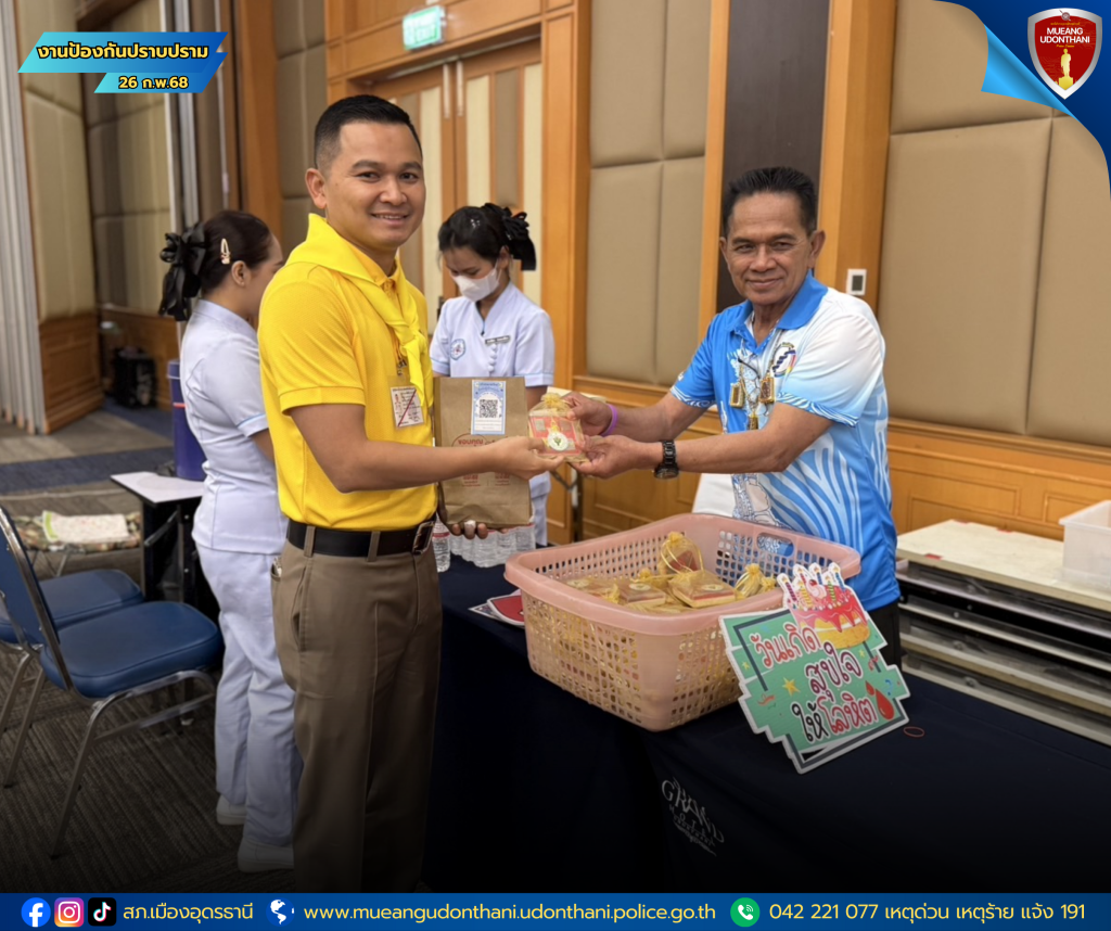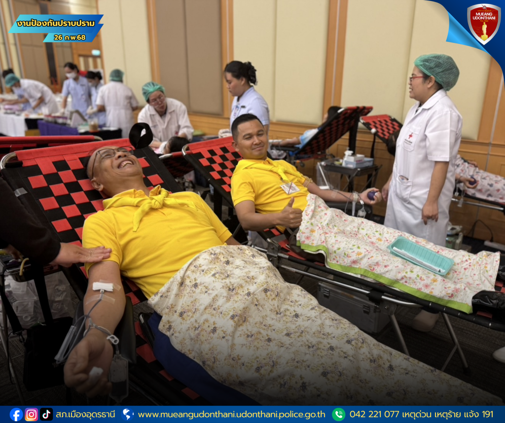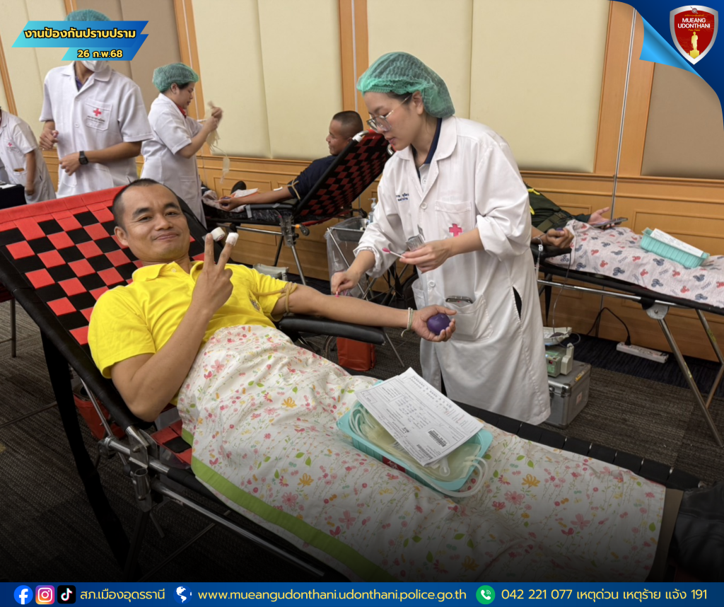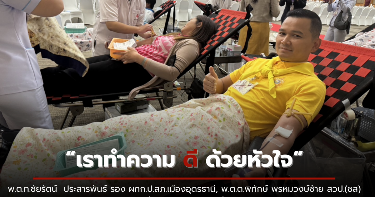 วันที่ 26 ก.พ. 68 ⏰เวลา 10.00 น. โดยการอำนวยการของ 👮‍♀️พล.ต.ต.สุวรรณ์ เชี่ยวนาวินธวัช รรท. ผบก.ภ.จว.อุดรธานี 👮‍♀️พ.ต.อ.พิเชฐ วงษ์บุรี รอง.ผบก.ภ.จว.อุดรธานี 👮‍♀️พ.ต.อ.พัฒนวงศ์ จันทร์พล ผกก.สภ.เมืองอุดรธานี มอบหมายให้ 👮‍♀️พ.ต.ท.ชัยรัตน์ ประสารพันธ์ รอง ผกก.ป.สภ.เมืองอุดรธานี 👮‍♀️พ.ต.ต.พิทักษ์ พรหมวงษ์ซ้าย สวป.(ชส)สภ.เมืองอุดรธานี 📜 พร้อมด้วยข้าราชการตำรวจ จิตอาสา“เราทำความ ดี ด้วยหัวใจ” สภ.เมืองอุดรธานี ร่วมบริจาคโลหิต เนื่องในวันสหกรณ์แห่งชาติ ปี 2568 โดยมี นายราชันย์ ซุ้นหั้ว ผู้ว่าราชการจังหวัดอุดรธานี เป็นประธานในพิธี ณ โรงแรมสยามแกรนด์ อ.เมือง จ.อุดรธานี