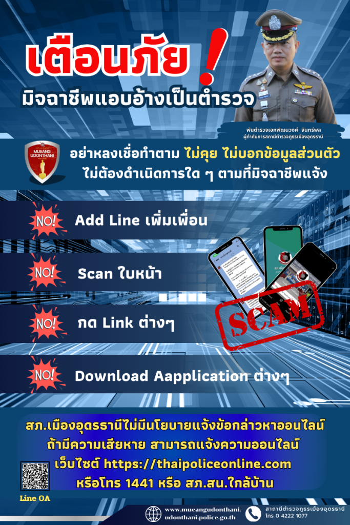 ด่วน เตือนภัย! มิจฉาชีพแอบอ้างเป็นเจ้าหน้าที่ตำรวจหลอกลวงประชาชน