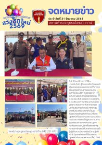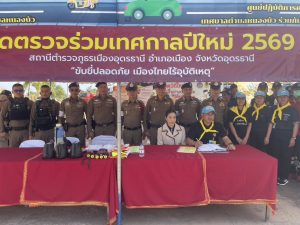 นายราชัน ซุ้นหั้ว ผู้ว่าราชการจังหวัดอุดรธานี พร้อมนายกสมาคมเหล่ากาชาดฯ ได้มาตรวจเยี่ยมจุดตรวจ/จุดบริการประชาชนห้วงเทศกาลปีใหม่ 2569 ณ จุดตรวจหน้าเทศบาลหนองบัว สภ.เมืองอุดรธานี พบ พ.ต.อ.จามร อันดี รอง ผบก.ภ.จว.อุดรธานี, พ.ต.อ.พัฒนวงศ์ จันทร์พล ผกก.สภ.เมืองอุดรธานี พร้อมเจ้าหน้าที่ประจำจุดตรวจประกอบด้วยฝ่ายปกครอง, สาธารณสุข, อาสาสมัคร อปพร. กู้ชีพ/กู้ภัย ได้มอบสิ่งของบำรุงขวัญ พร้อมคำแนะนำในการปฏิบัติหน้าที่เน้นการอำนวยความสะดวกด้านการจราจร การบังคับใช้กฏหมาย การบริการช่วยเหลือประชาชนด้วยจิตอาสา ปฏิบัติหน้าที่ด้วยความระมัดระวังโดยยึดหลักกฏหมายและหลักยุทธวิธีในการทำงาน และขอให้ผู้ปฏิบัติทุกนายมีความพร้อมในการปฏิบัติหน้าที่ มีสุขภาพร่างกายที่แข็งแรงพร้อมปฏิบัติหน้าที่ตลอดห้วงเทศกาลปีใหม่ 2569