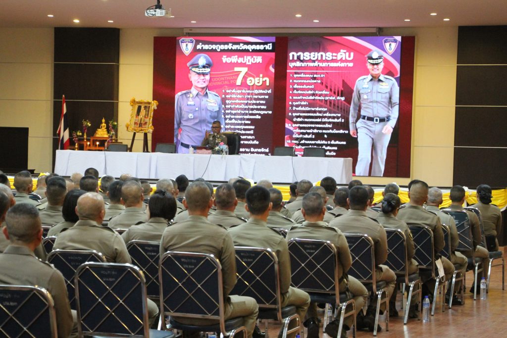 เมื่อวันที่ 6 พฤศจิกายน 2566 เวลา 18.00 น. พล.ต.ต.สรรธาน อินทรจักร์ รรท.ผบก.ภ.จว.อุดรธานีประชุมมอบนโยบายให้กับข้าราชการตำรวจ สังกัด สภ.มืองอุดรธานี สภ.ย่อยห้วยหลวง นาข่า โนนสูง ทุกนาย โดยมี พ.ต.อ.จามร อันดี ผกก. สภ.เมืองอุดรธานี พร้อมข้าราชการตำรวจ สภ.เมืองอุดรธานีให้การต้อนรับ ณ ห้องประชุม บน.23 โดยได้เน้นย้ำให้ข้าราชการตำรวจทุกนายปฏิบัติงานอย่างมืออาชีพโดยยีดประชาชนเป็นศูนย์กลาง และให้ถือปฏิบัติตามข้อพึ่งปฏิบัติ 7 อย่าง โดยเคร่งครัด