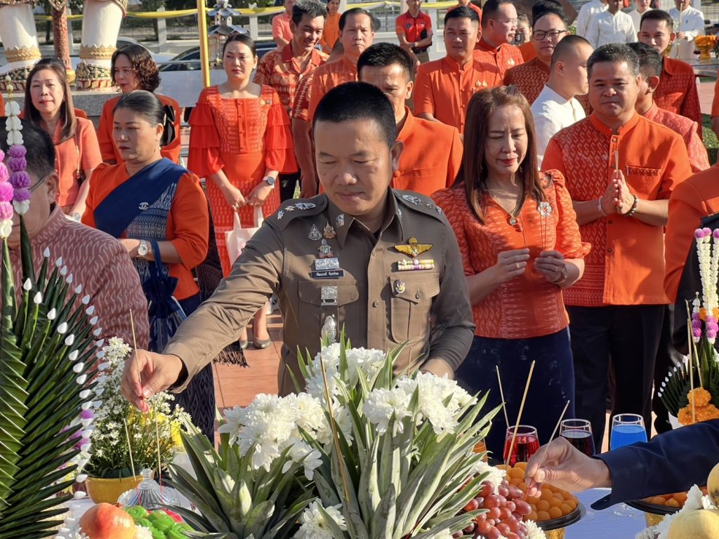 พิธีบวงสรวงศาลหลักเมือง 2 ธันวาคม 2567 โดย admin / ข่าวภารกิจผู้บังคับบัญชา,ภารกิจผู้บังคับบัญชา เมื่อวันที่ 1 ธ.ค.67 เวลา 07.30 น.โดยการอำนวยการของ พล.ต.ต.สรรธาน อินทรจักร์ ผบก.ภ.จว.อุดรธานี, พ.ต.อ.พัฒนวงศ์ จันทร์พล ผกก.สภ.เมืองอุดรธานี, พ.ต.ต.พิทักษ์ พรหมวงษ์ซ้าย สวป.(ชส.)ฯ ร่วมพิธีบวงสรวง ถวายเครื่องสักการะบูชาพระพุทธโพธิ์ทอง ศาลหลักเมืองและท้าวเวสสุวรรณ โดยมีนายราชันย์ ซุ้นหั้ว ผู้ว่าราชการฯ เป็นประธานในพิธี ณ ศาลหลักเมืองอุดรธานี จำนวนคนเข้าดู: 16 Facebook iconFacebookTwitter iconTwitterLINE iconLine