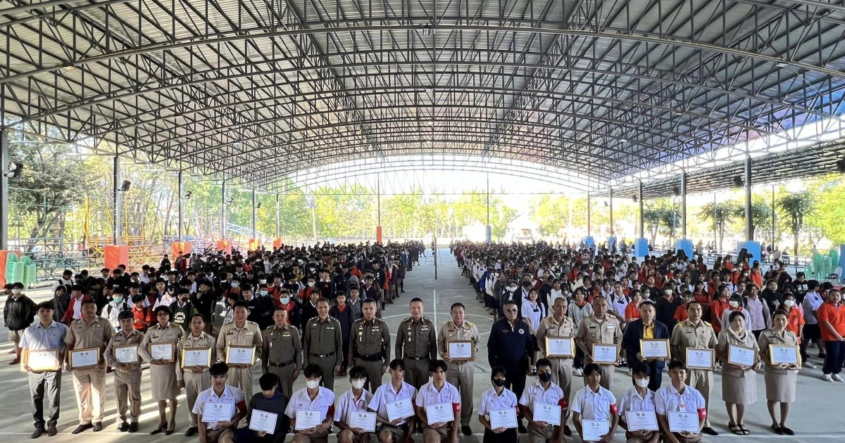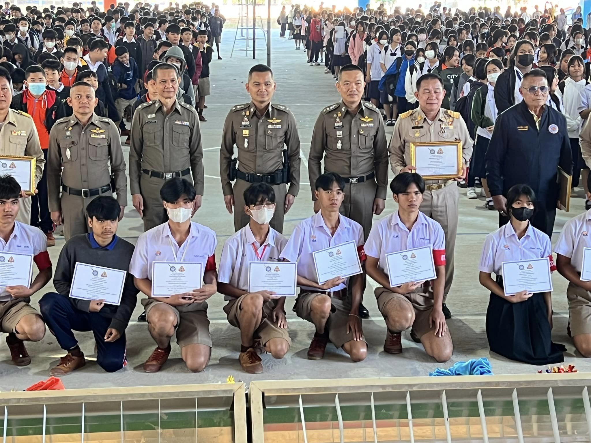 เมื่อวันที่ 8 ม.ค.67 เวลา 08.00-08.45 น. โดยการนำของ พ.ต.อ.พัฒนวงศ์ จันทร์พล ผกก.สภ.เมืองอุดรธานี , พ.ต.ท.ชัยรัตน์ ประสารพันธ์ รอง ผกก.ป.ฯ , พ.ต.ต.พิทักษ์ พรหมวงษ์ซ้าย สว.(ชส.)ฯ , ร.ต.อ.อรุณ พัฒนชัยวัฒน์ รอง สว.(ป.)ฯ ครูตำรวจแดร์ ร่วมพิธีมอบใบประกาศนียบัตรนักเรียน ตามโครงการ 1 ตำรวจ 1 โรงเรียน “การป้องกันและแก้ไขปัญหา“ อย่างเป็นระบบ ในด้านยาเสพติด , การพนัน, สื่อลามกอนาจาร ร้านเกม, สถานบันเทิง ณ โรงเรียนประจักษ์ศิลปาคาร โดยมี นายประสุข ศรีจันทร์ ผอ.รร.ประจักษ์ศิลปคาร และคณะครู อาจารย์ นักเรียน ร่วมกันเป็นสักขีพยานในครั้งนี้