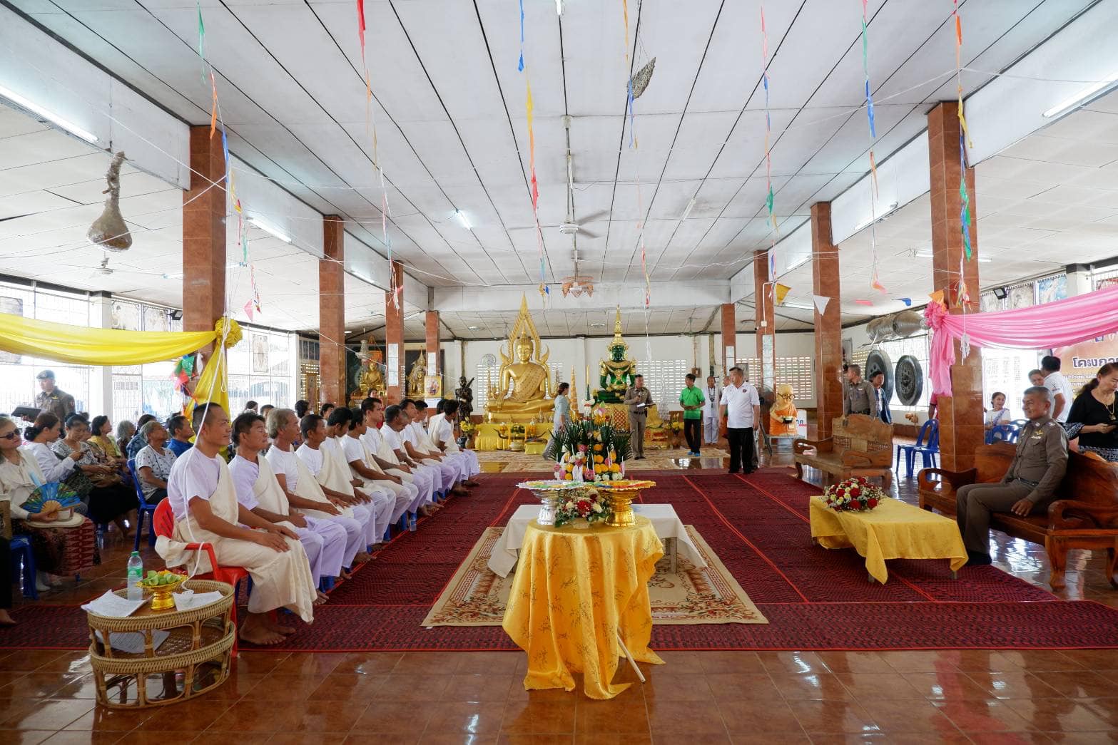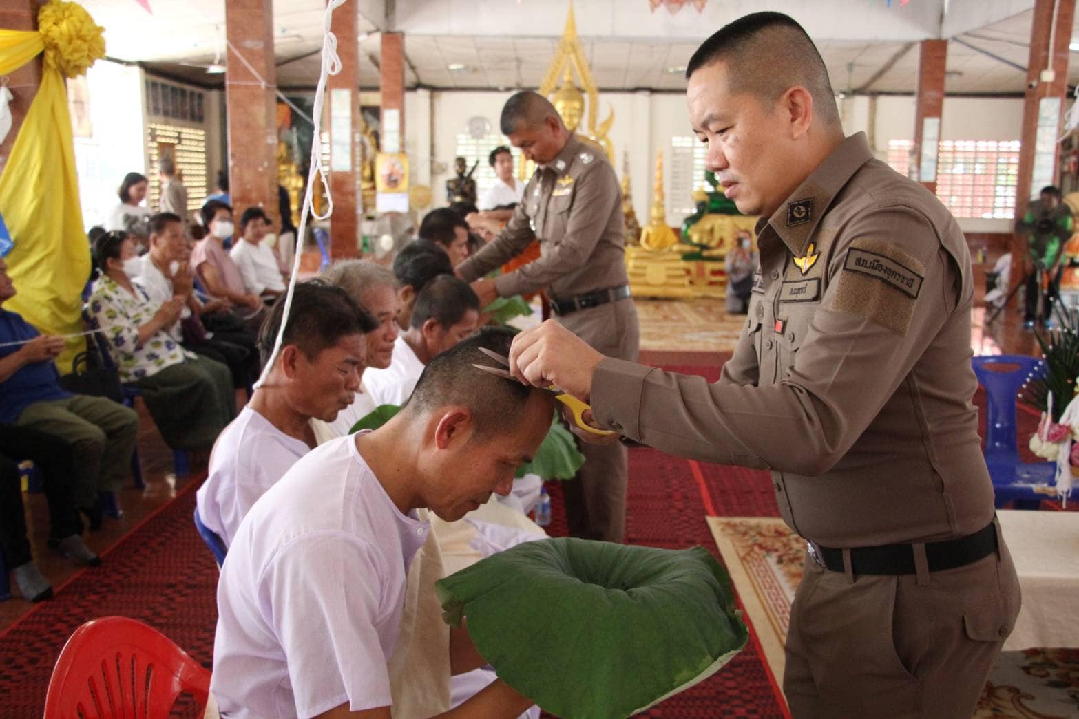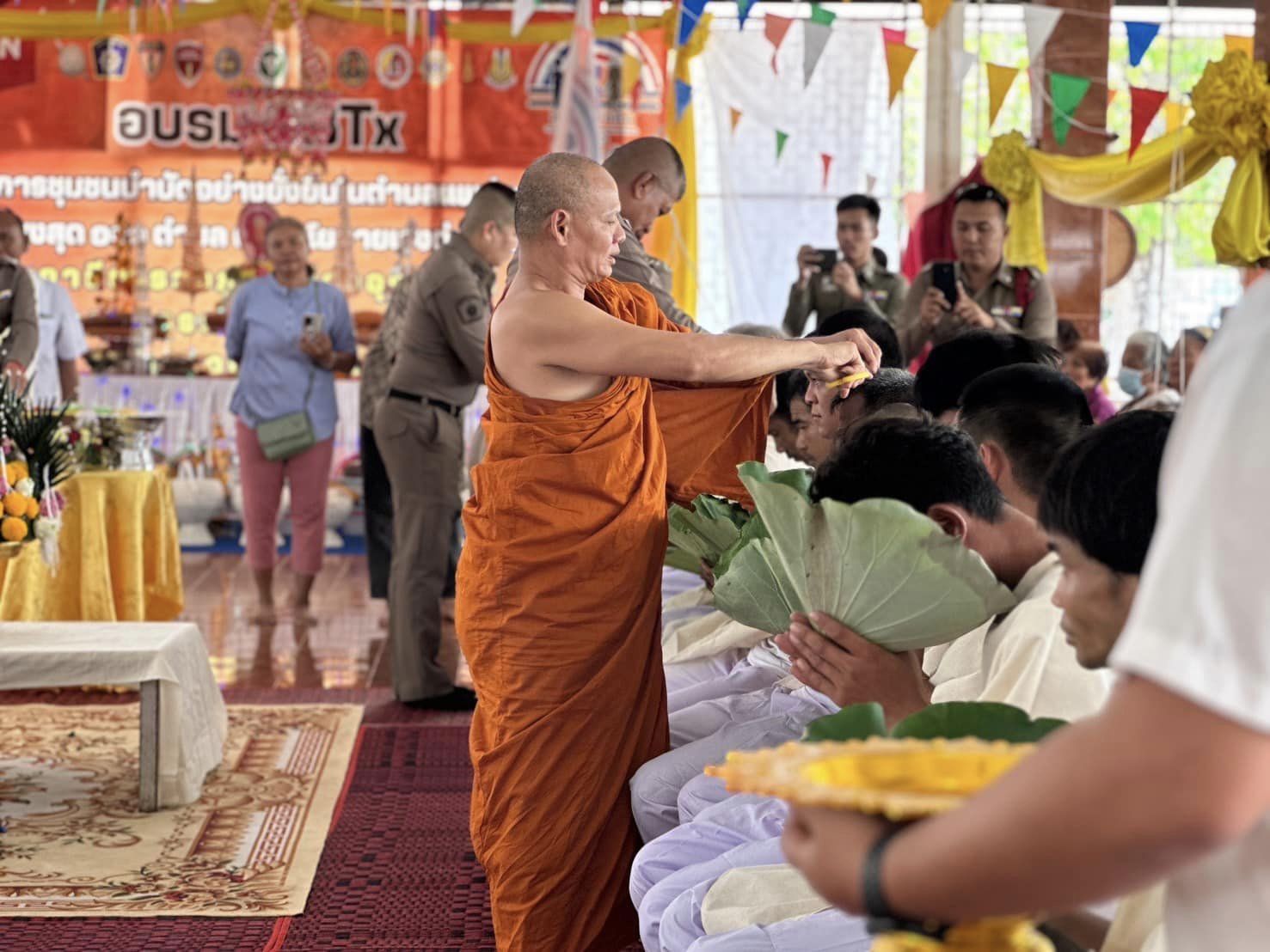 พิธีอุปสมบทประชาชนผู้เข้าร่วมโครงการชุมชนบำบัตอย่างยั่งยืนในตำบลที่แพร่ระบาดยาเสพติดสูงสุด 100 ตำบล ตามนโยบายเร่งด่วนของรัฐบาล