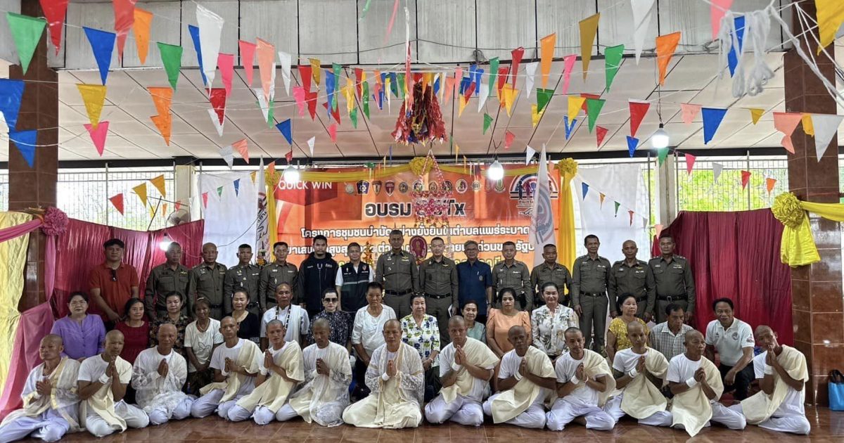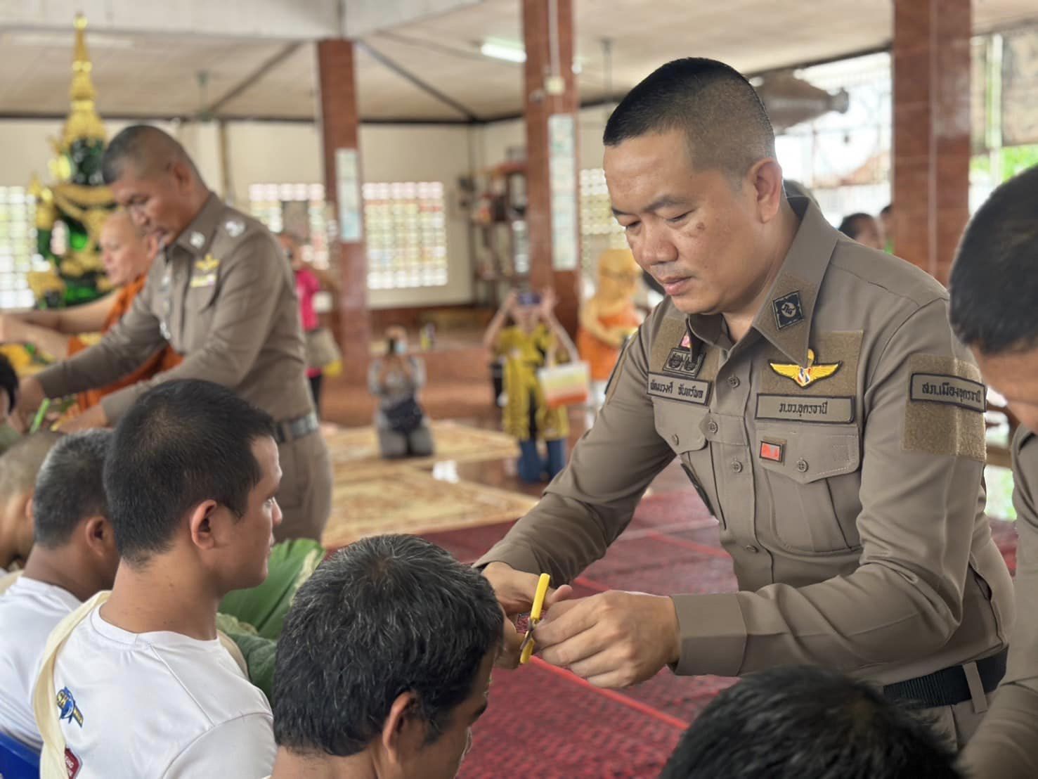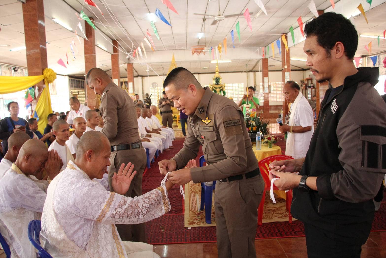 พิธีอุปสมบทประชาชนผู้เข้าร่วมโครงการชุมชนบำบัตอย่างยั่งยืนในตำบลที่แพร่ระบาดยาเสพติดสูงสุด 100 ตำบล ตามนโยบายเร่งด่วนของรัฐบาล