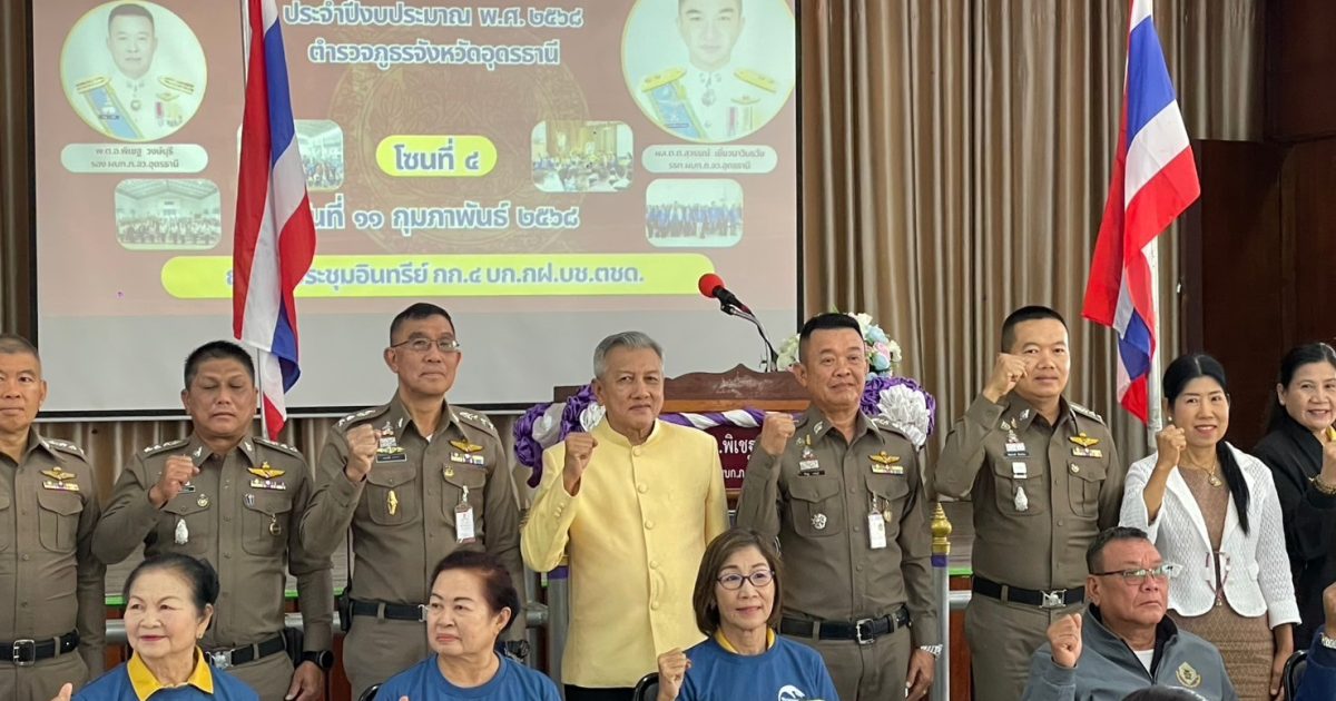 เมื่อวันนี้ (11 ก.พ.68) เวลา 09.00 น. โดยการอำนวยการ พล.ต.ต.สุวรรณ์ เชี่ยวนาวินธวัช ผบก.ภ.จว.นครปฐม รรท.ผบก.ภ.จว.อุดรธานี มอบหมายให้ พ.ต.อ.พิเชฐ วงษ์บุรี รอง ผบก.ภ.จว.อุดธานี เป็นประธานพิธีเปิดโครงการสร้างเครือข่ายการมีส่วนร่วมของประชาชนในการแก้ไขปัญหาความเดือดร้อนของประชาชน ในระดับสถานีตำรวจ เพื่อสนับสนุนการป้องกันอาชญากรรม ประจำปีงบประมาณ พ.ศ.2568 พร้อมด้วย พ.ต.อ.บรรจบ สีหานาวี ผกก.(สอบสวน)กลุ่มงานสอบสวน ภ.จว.อุดรธานี ,พ.ต.อ.พัฒนวงศ์ จันทร์พล ผกก.สภ.เมืองอุดรธานี ,พ.ต.อ.สรายุทธ ฉ่ำผิว ผกก.สภ.หนองวัวซอ ,พ.ต.อ.อัมรินทร์ อยู่เย็น ผกก.สภ.กุดจับ ,พ.ต.อ.กานต์ ตั้งวิจิตร ผกก.สภ.สร้างคอม ,พ.ต.ท.ไพฑูรย์ โสนะโชติ รอง ผกก.ป.ฯแทน ผกก.สภ.เพ็ญ, พ.ต.ท.มานิตย์ แก้วเจริญ รอง ผกก.หน.สภ.ย่อยห้วยหลวง และเจ้าหน้าที่ตำรวจที่เกี่ยวข้อง โดยมี พ.ต.อ.สมบัติ ธารา ผกก.4 บก.กฝ.บช.ตชด. , ปลัดอำเภอฯ/ผู้นายอำเภอเมืองอุดรธานี, รองนายกเทศมนตรีนครอุดรธานี, ผู้อำนวยการสถาบันพัฒนาฝีมือแรงงาน 18 อุดรธานี, ผู้อำนวยการศูนย์คุ้มครองคนไร้ที่พึ่งจังหวัดอุดรธานี, พัฒนาการอำเภอเมืองอุดรธานี ผู้อำนวยการ กลุ่มลูกเสือยุวกาชาดและกิจการนักเรียน, กต.ตร.สภ.เมืองอุดรธานี , กำนัน ผู้ใหญ่บ้าน เข้าร่วมเป็นเกียรติพิธีเปิด โดยมีประชาชน ผู้นำท้องถิ่น ผู้นำชุมชน กำนัน ผู้ใหญ่บ้าน อส.ตร.ฯ จากพื้นที่ 5 สภ. ได้แก่ สภ.เมืองอุดรธานี , หนองวัวซอ, กุดจับ, เพ็ญ, สร้างคอม รวมจำนวน 250 คน เข้ารับการอบรม ณ หอประชุมอินทรีย์ กก.4 บก.กฝ.บช.ตชด. อ.เมือง จว.อุดรธานี