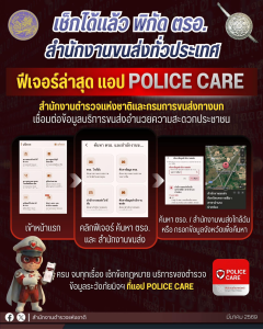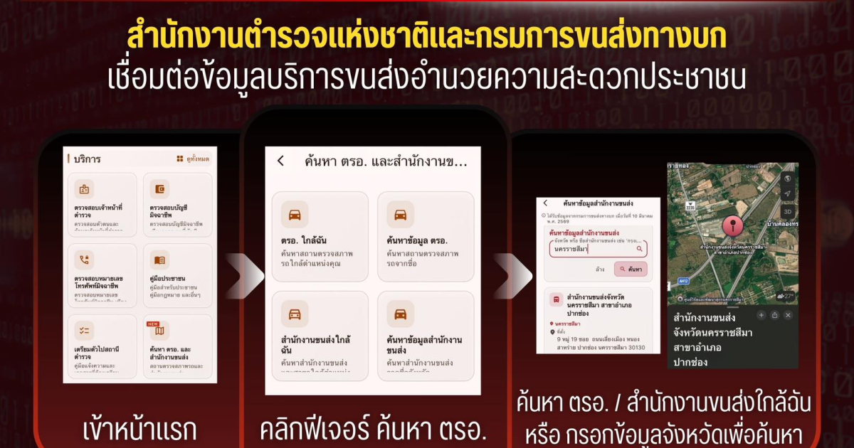 ฟีเจอร์ใหม่เพื่อคนใช้รถ “สำนักงานตำรวจแห่งชาติ” เชื่อมข้อมูล “ขนส่ง” แค่คลิก เช็กพิกัด ตรอ.-สำนักงานขนส่ง ง่าย ครบ จบ ที่แอปพลิเคชัน “POLICE CARE”