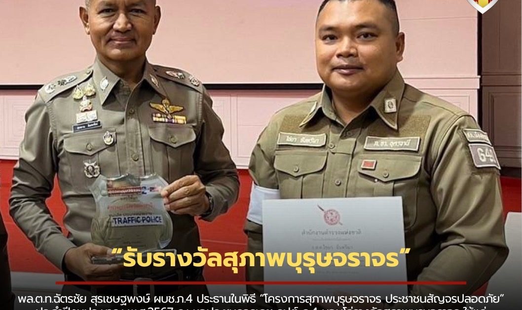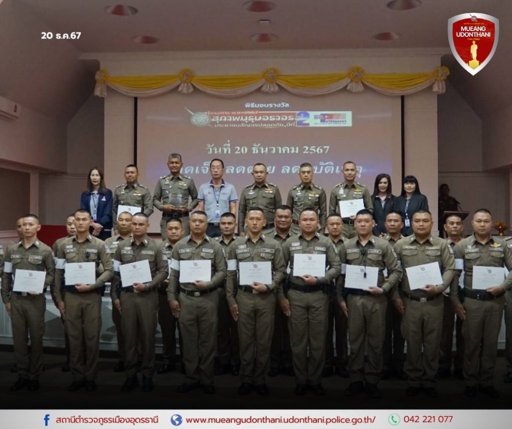 รับรางวัลสุภาพบุรุษจราจร 24 ธันวาคม 2567 โดย admin / ประกาศ เมื่อวันที่ 20 ธ.ค.67 พล.ต.ท.ฉัตรชัย สุรเชษฐพงษ์ ผบช.ภ.4 ประธานีในพิธี โครงการสุภาพบุรุษจราจร ประชาชนสัญจรปลอดภัย ประจำปีงบประมาณ พ.ศ.2567 ณ หอประชุมควรเดชะคุปต์ ภ.4 มอบโล่รางวัลสุภาพบุรุษจราจร ให้แก่ พล.ต.ต.สรรธาร อินทรจักร์ ผบก.ภ.จว.อุดรธานี (ประเภทหน่วยงาน) และ จ.ส.ต.ไชยา จันทริมา ผบ.หมู่ (จร.) สภ.เมืองอุดรธานี รับรางวัลสุภาพบุรุษจราจร (ประเภทบุคคล) จำนวนคนเข้าดู: 12 Facebook iconFacebookTwitter iconTwitterLINE iconLine