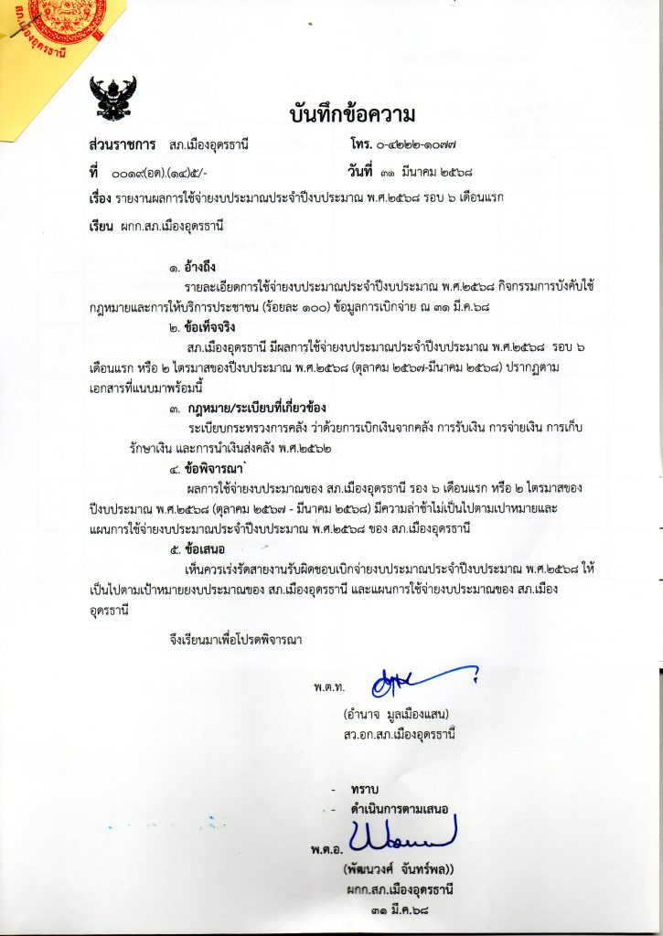 การรายงานผลแผนการใช้จ่ายเงินงบประมาณ ปีงบประมาณ พ.ศ. 2568