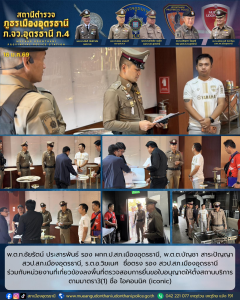 พ.ต.ท.ชัยรัตน์ ประสารพันธ์ รอง ผกก.ป.สภ.เมืองอุดรธานี, พ.ต.ต.บัญชา สาระปัญญาสวป.สภ.เมืองอุดรธานี, ร.ต.อ.วิฆเนศ ซื่อตรง รอง สวป.สภ.เมืองอุดรธานีร่วมกับหน่วยงานที่เกี่ยวข้องลงพื้นที่ตรวจสอบการยื่นขอใบอนุญาตให้ตั้งสถานบริการตามมาตรา3(1) ชื่อ ไอคอนนิค (iconic)