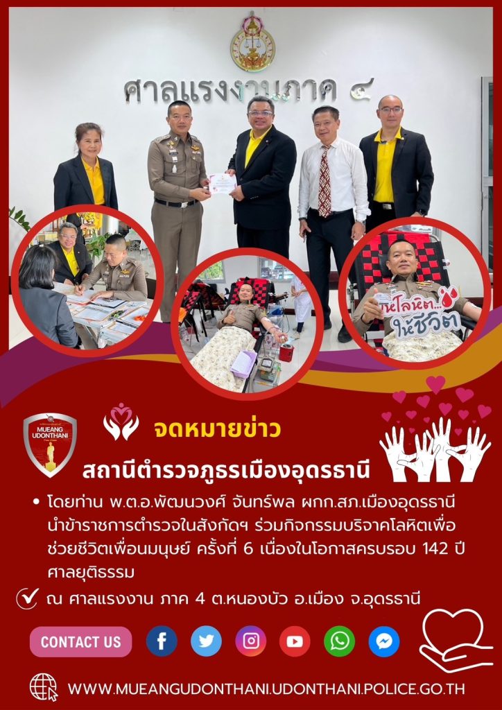 ร่วมกิจกรรมบริจาคโลหิตเพื่อช่วยชีวิตเพื่อนมนุษย์ ครั้งที่ 6 เนื่องในโอกาสครบรอบ 142 ปี ศาลยุติธรรม