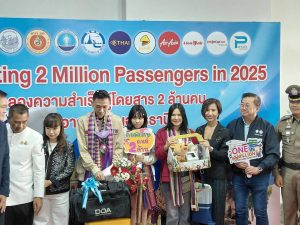 พร้อมด้วยแขกผู้มีเกียรติทุกท่าน ร่วมฉลองความสำเร็จผู้โดยสาร 2 ล้านคน(Celebrating 2 million passengers in 2025) ของท่าอากาศยานนานาชาติอุดรธานี พร้อมมอบของรางวัลให้แก่ผู้โดยสารคนที่ 2,000,000 และอวยพร เนื่องในโอกาสส่งท้ายปีเก่า ต้อนรับปีใหม่ด้วย