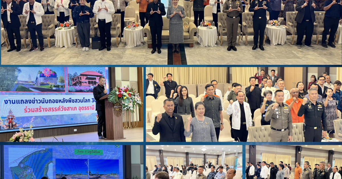 พ.ต.อ.พัฒนวงศ์ จันทร์พล ผกก.สภ.เมืองอุดรธานี, ชัยณรงค์ ขั้นทะสีมา รอง ผกก.จร.ฯ ร่วมเป็นเกียรติในงานแถลงข่าวนับถอยหลัง 300 วัน สู่มหกรรมพืชสวนโลก 2569 และร่วมสร้างสรรค์ สถาปัตยกรรมวังสาเก อุดรธานี โดยมี นายราชันย์ ซุ้นหัว ผู้ว่าราชการจังหวัด อุดรธานี เป็นประธานฯ นายณฐพล วิถี รองผู้ว่าฯ พร้อมด้วย หัวหน้าส่วนราชการ สื่อมวลชนประชาชนร่วมในงานแถลงข่าวครั้งนี้ ณ โรงแรมสยามแกรนด์ ต.หนองบัว