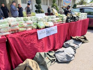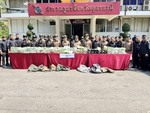 📚 ร่วมแถลงข่าวจับกุมผู้ต้องหาลักลอบขนยาเสพติดตรวจยึดของกลางยาไอซ์ จำนวน 202 กก. บรรจุอยู่ในกระเป๋าผ้าขนาดใหญ่ จำนวน 6 ใบ และรถยนต์ Mazda 2 สีเทา ทะเบียน ขข 7333 อุดรธานี วันเวลาเกิดเหตุ 21 มี.ค.69 เวลาประมาณ 02.00 น. สถานที่เกิดเหตุ ถ.ศุภกิจจรรยา บริเวณหน้า สนง.เกษตรจังหวัดอุดรธานี ริมสวนสาธารณะหนองประจักษ์ แถลงข่าวต่อสื่อมวลชน โดยมี นายราชันย์ ซุ้นหั้ว ผู้ว่าราชการจังหวัดอุดรธานี ประธานแถลงข่าว, นายอำเภอเมืองอุดรธานี, นายกเทศมนตรีนครอุดรธานี ร่วมแถลง