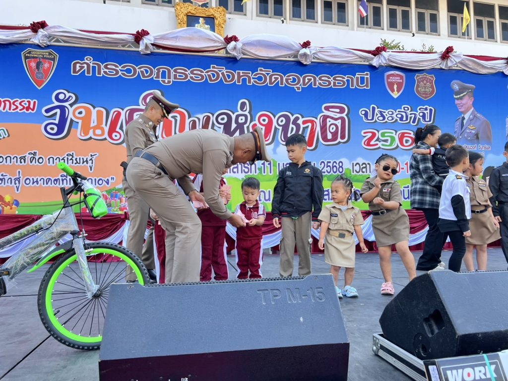 เมื่อวันที่ 11 ม.ค.68 เวลา 08.30 น. พล.ต.ต.สรรธาน อินทรจักร์ ผบก.ภ.จว.อุดรธานี พร้อมภริยา นางจิรพันธ์ อินทรจักร์ ประธานแม่บ้านตำรวจฯ พ.ต.อ.พัฒนวงศ์ จันทร์พล ผกก.สภ.เมืองอุดรธานี พร้อมภริยา น.ส.กฤตติกา จันทร์พล ประธานแม่บ้าน สภ.เมืองฯ และ คณะ กต.ตร.สภ.เมืองฯ ภาคเอกชน ตำรวจท่องเที่ยว กก.สส. ตรวจคนเข้าเมือง ตชด.24 กำลังพล ภ.จว.อุดรฯ ร่วมกันจัดกิจกรรมวันเด็กแห่งชาติ ประจำปี 2568 โดยภายในงานมีกิจกรรมของรางวัลแจกมากมาย อาทิเช่น จักรยาน ตุ๊กตา ฯลฯ และมีเครื่องเล่นสไลเดอร์เป่าลม ซุ้มอาหาร ค่อยให้บริการผู้มาร่วมกิจกรรมฟรีตลอดงาน ณ ลานหน้า สภ.เมืองอุดรธานี