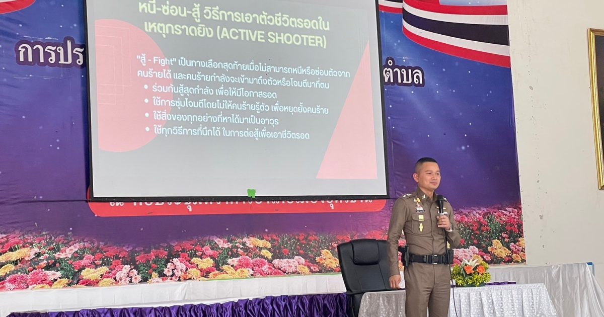ร่วมเป็นวิทยากร ให้ความรู้ยุทธวิธีในการเข้าระงับเหตุจากการก่อเหตุของผู้ก่อเหตุรุนแรงและการก่อเหตุของผู้ป่วยจิตเวชคลุ้มคลั่งเพื่อให้ความรู้กำนัน ผู้ใหญ่บ้าน ในบทบาทในการรักษาความสงบเรียบร้อยในสังคม