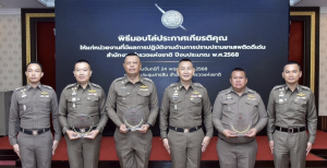 วันนี้ (24 พฤศจิกายน 2568) พล.ต.อ.กิตติ์รัฐ พันธุ์เพ็ชร์ ผู้บัญชาการตำรวจแห่งชาติ (ผบ.ตร.) เป็นประธานมอบโล่ประกาศเกียรติคุณให้แก่หน่วยงานที่มีผลการปฏิบัติงานด้านการปราบปรามยาเสพติดดีเด่น ของสำนักงานตำรวจแห่งชาติ ประจำปีงบประมาณ พ.ศ.2568 โดยมีหน่วยงานระดับกองบัญชาการถึงสถานีตำรวจได้รับรางวัล 15 รางวัล พิจารณาผลงานเป็นที่ประจักษ์ตามหลักเกณฑ์ที่ศูนย์อำนวยการป้องกันและปราบปรามยาเสพติด สำนักงานตำรวจแห่งชาติ (ศอ.ปส.ตร.) ณ ห้องสารสิน อาคาร 1 สำนักงานตำรวจแห่งชาติ