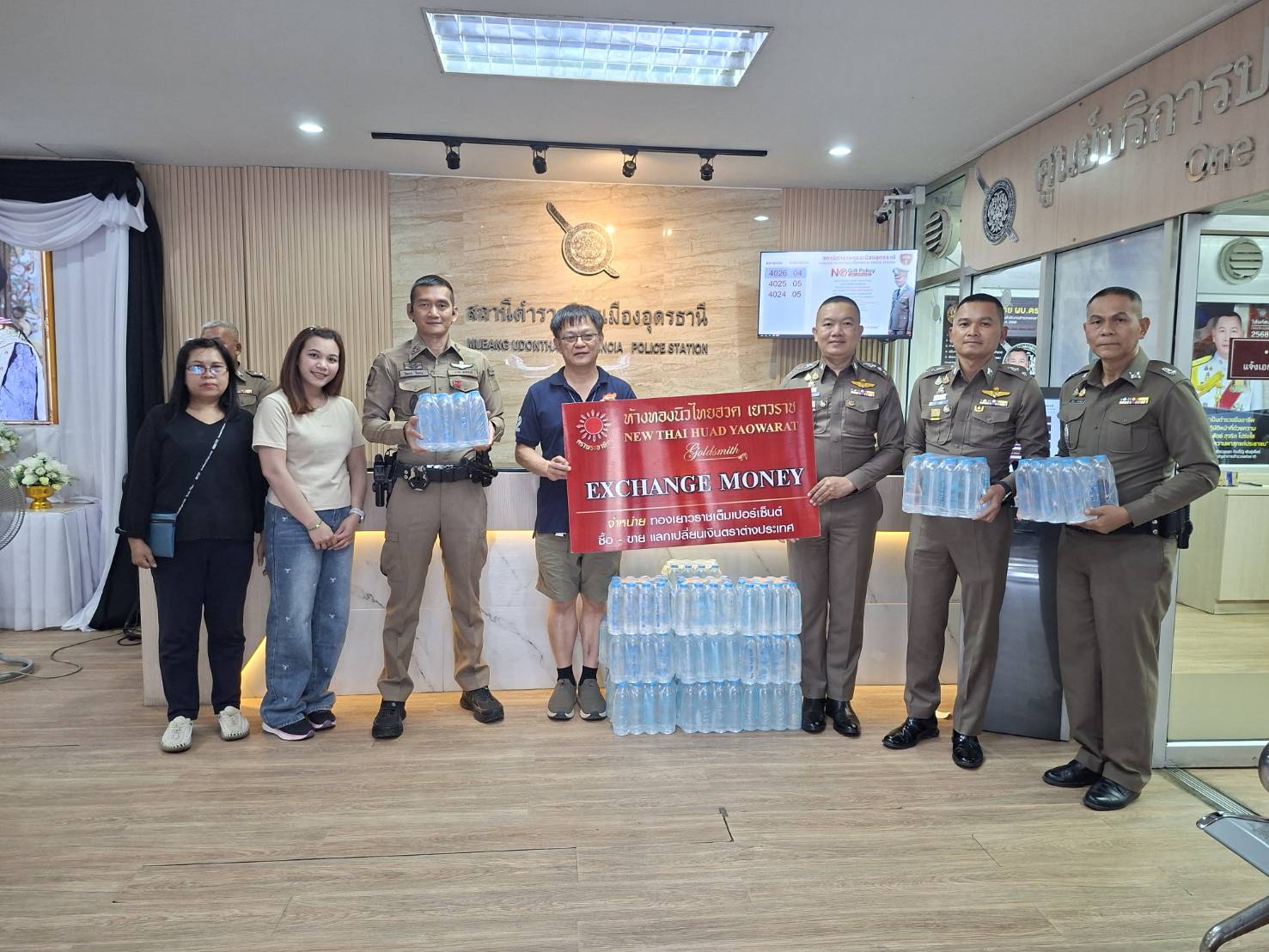 นาย บุญส่ง กันตพิทยา คณะกรรมการ กต.ตร.สภ.เมืองอุดรธานี เป็นตัวแทน กต.ตร. มอบน้ำดื่ม 200 โหล ให้กับท่