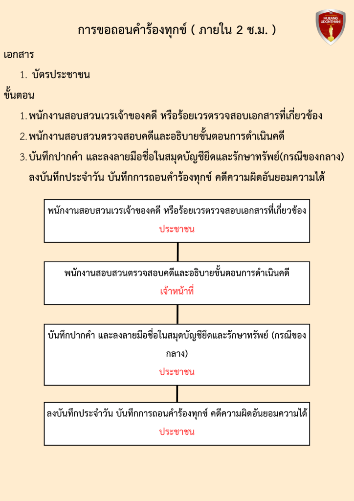 การขอถอนคำร้องทุกข์ ( ภายใน 2 ช.ม. )