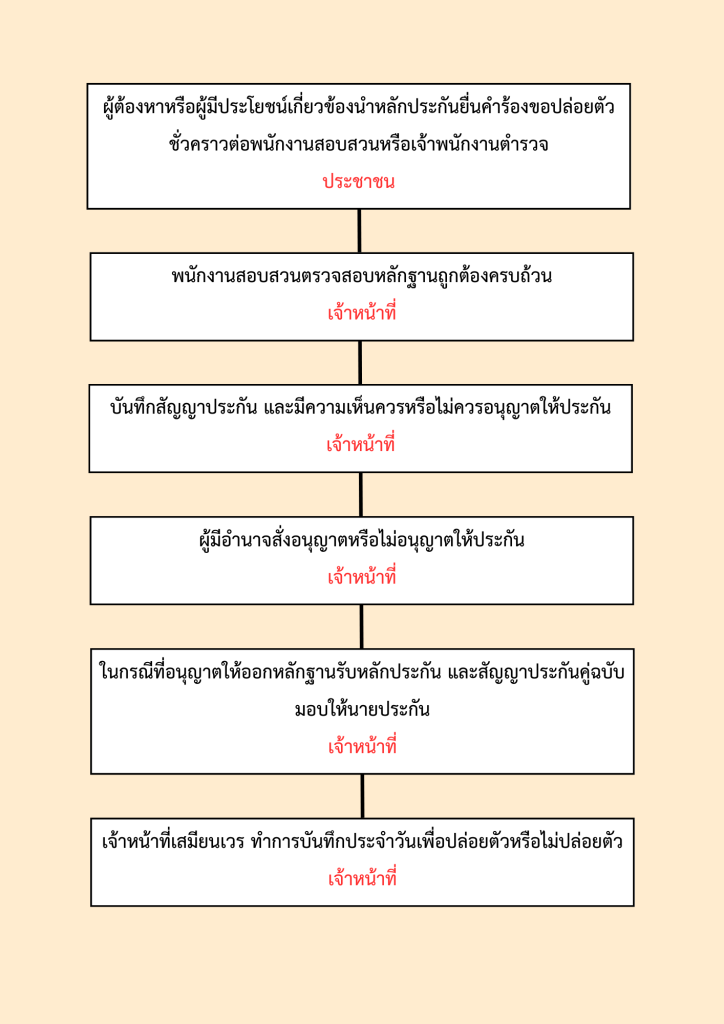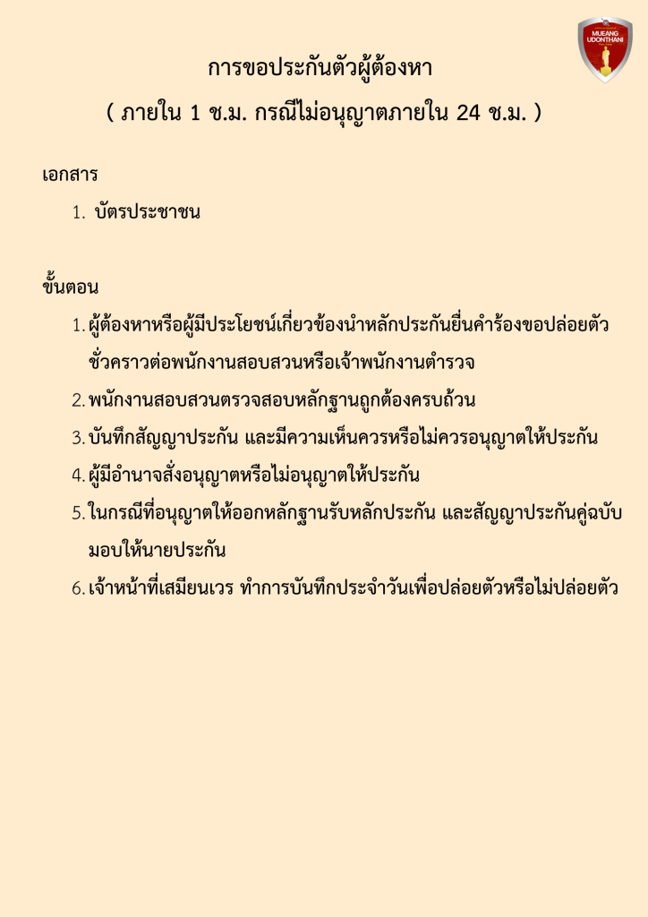 การขอประกันตัวผู้ต้องหา ( ภายใน 1 ช.ม. กรณีไม่อนุญาตภายใน 24 ช.ม. )