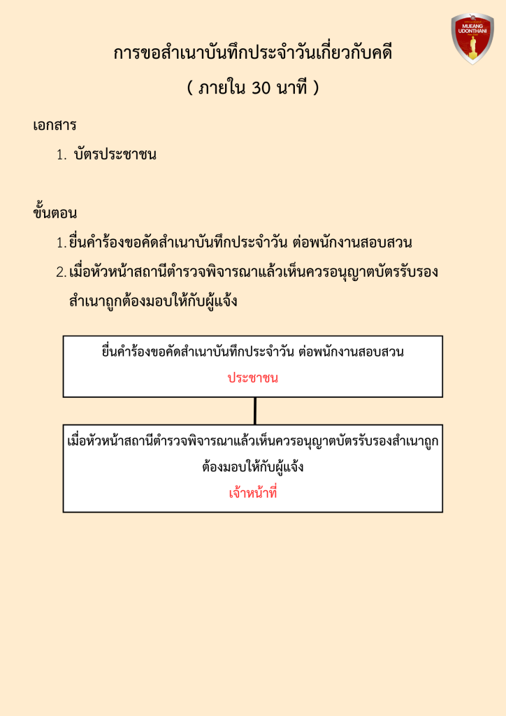 การขอสำเนาบันทึกประจำวันเกี่ยวกับคดี ( ภายใน 30 นาที )
