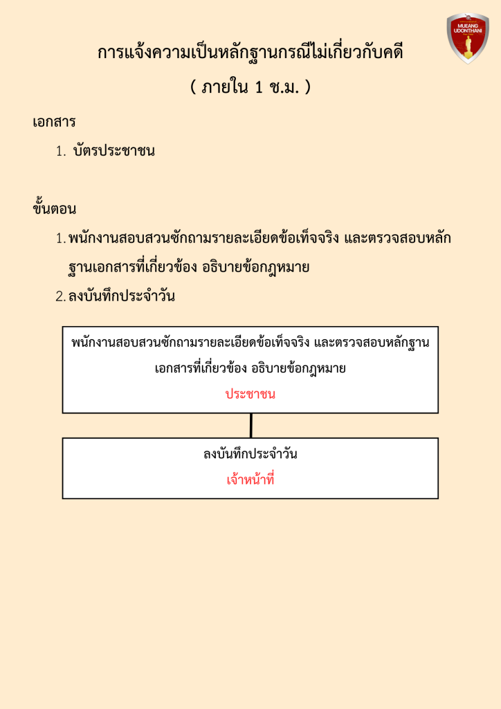 การแจ้งความเป็นหลักฐานกรณีไม่เกี่ยวกับคดี ( ภายใน 1 ช.ม. )