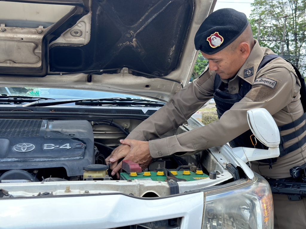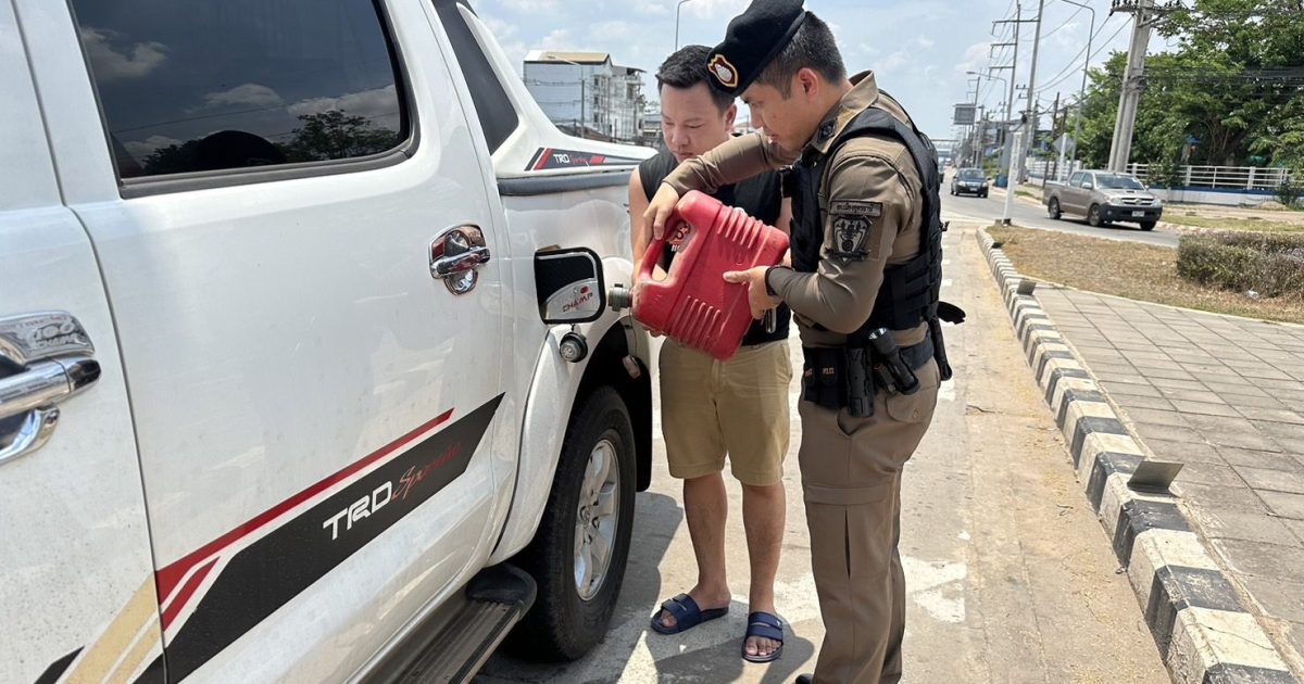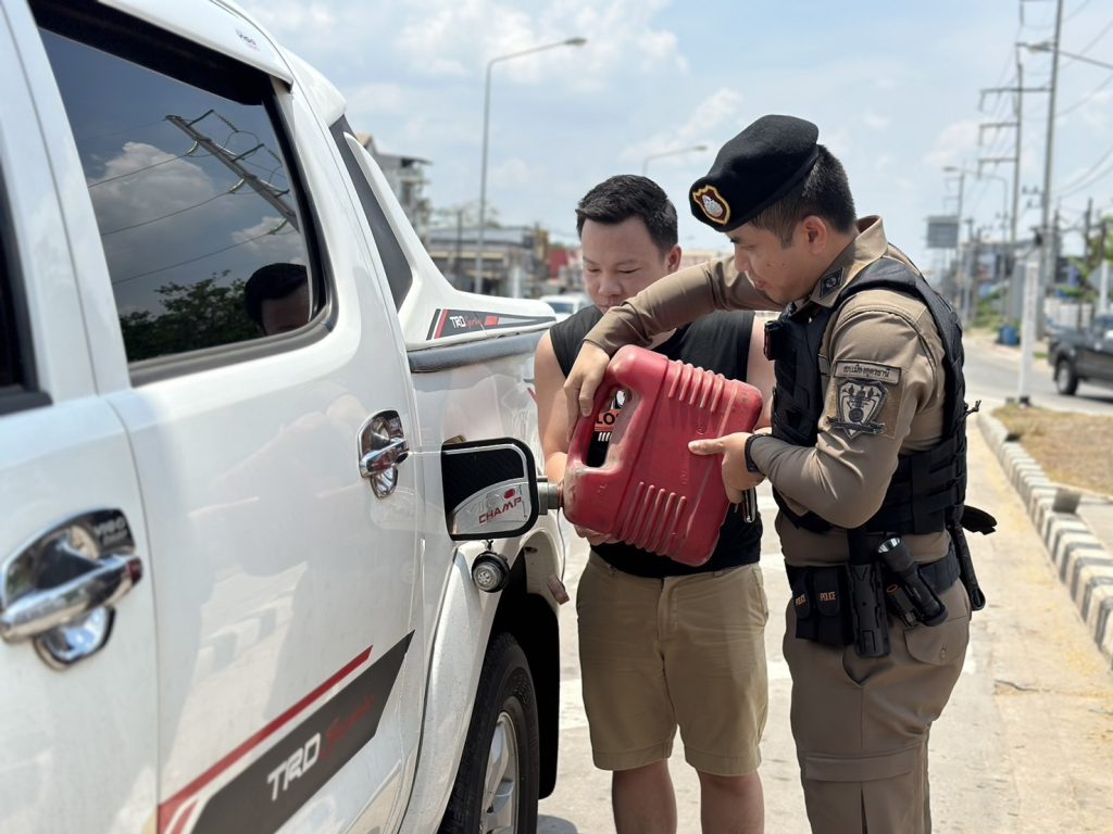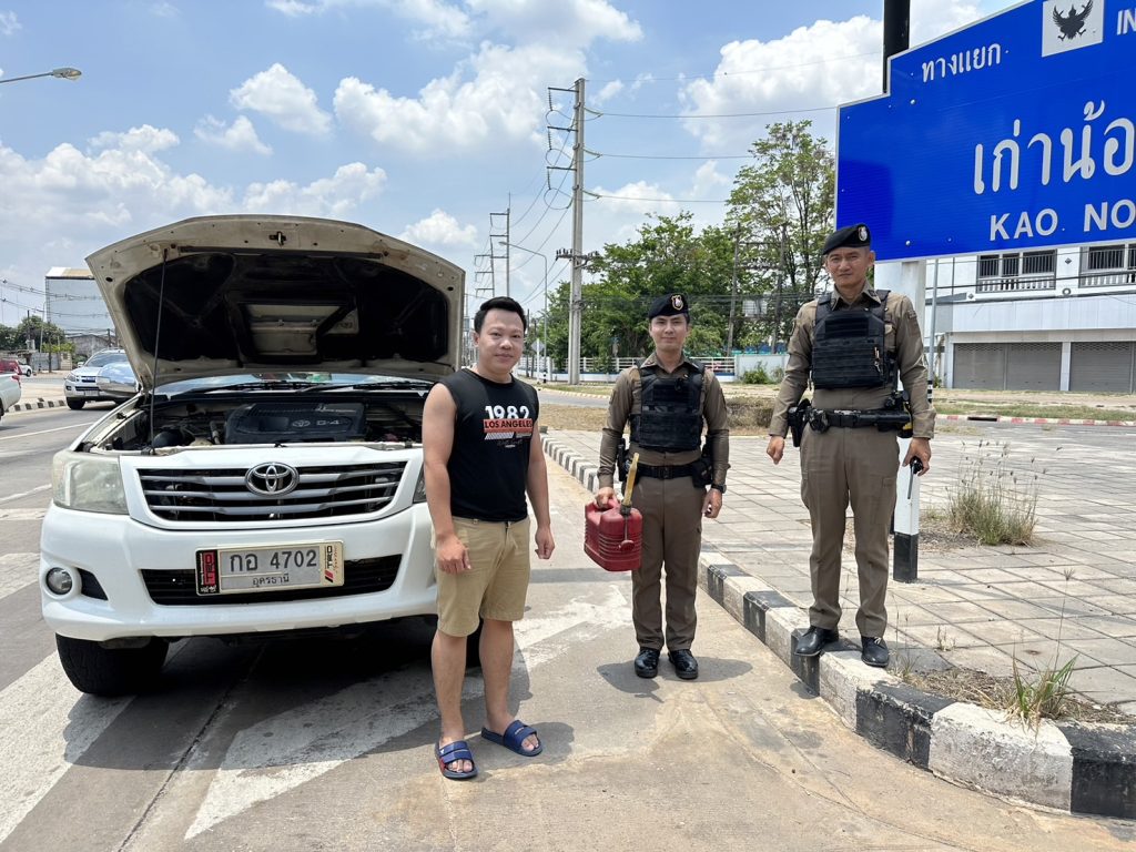 เจ้าหน้าที่ตำรวจ สภ.เมืองอุดรธานี ให้ความช่วยเหลือประชาชนรถยนต์เชื้อเพลิงหมด กลางไฟแดง แยกบายพาสหนองคาย