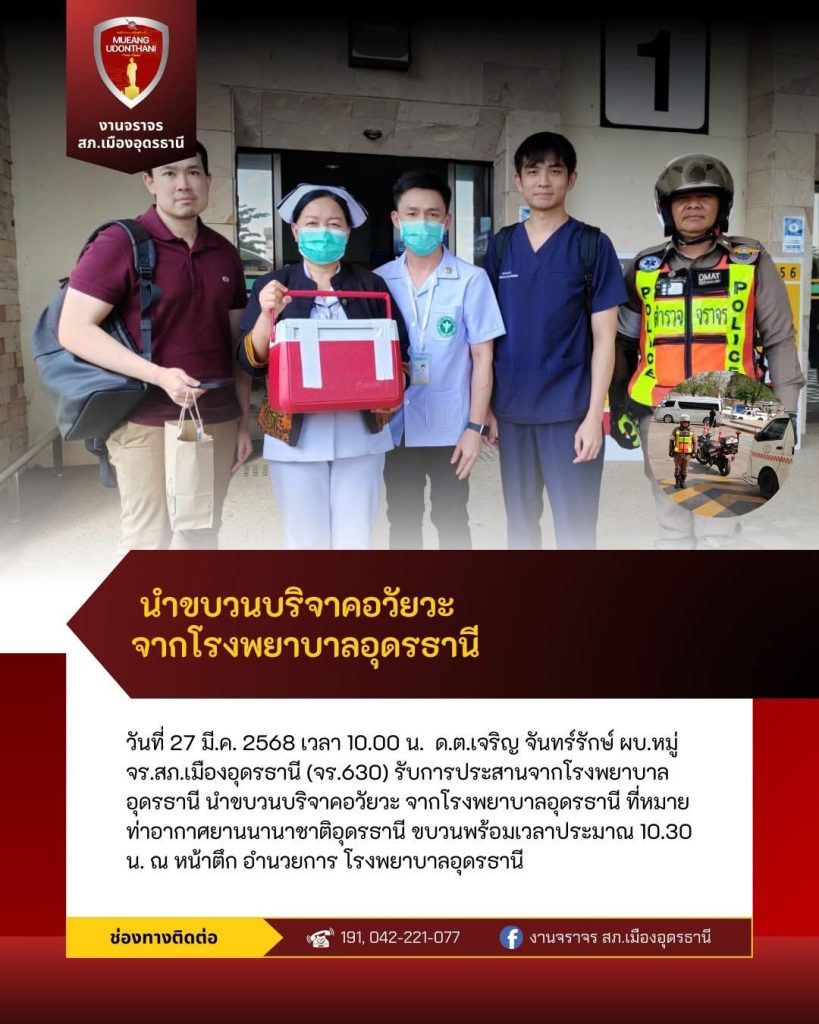 นำขบวนบริจาคอวัยวะ จากโรงพยาบาลอุดรธานี ไปยังท่าอากาศยานนานาชาติอุดรธานี