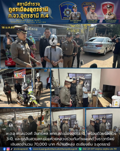พ.ต.อ.พัฒนวงศ์ จันทร์พล ผกก.สภ.เมืองอุดรธานี, พร้อมด้วยร้อยเวร 3-0, และชุดสืบสวนสภ.ย่อยห้วยหลวงร่วมกันทำแผนคดีวิ่งราวทรัพย์เงินสดจำนวน 70,000 บาท ที่บ้านอีหลุ่ง ต.เชียงยืน จ.อุดรธานี