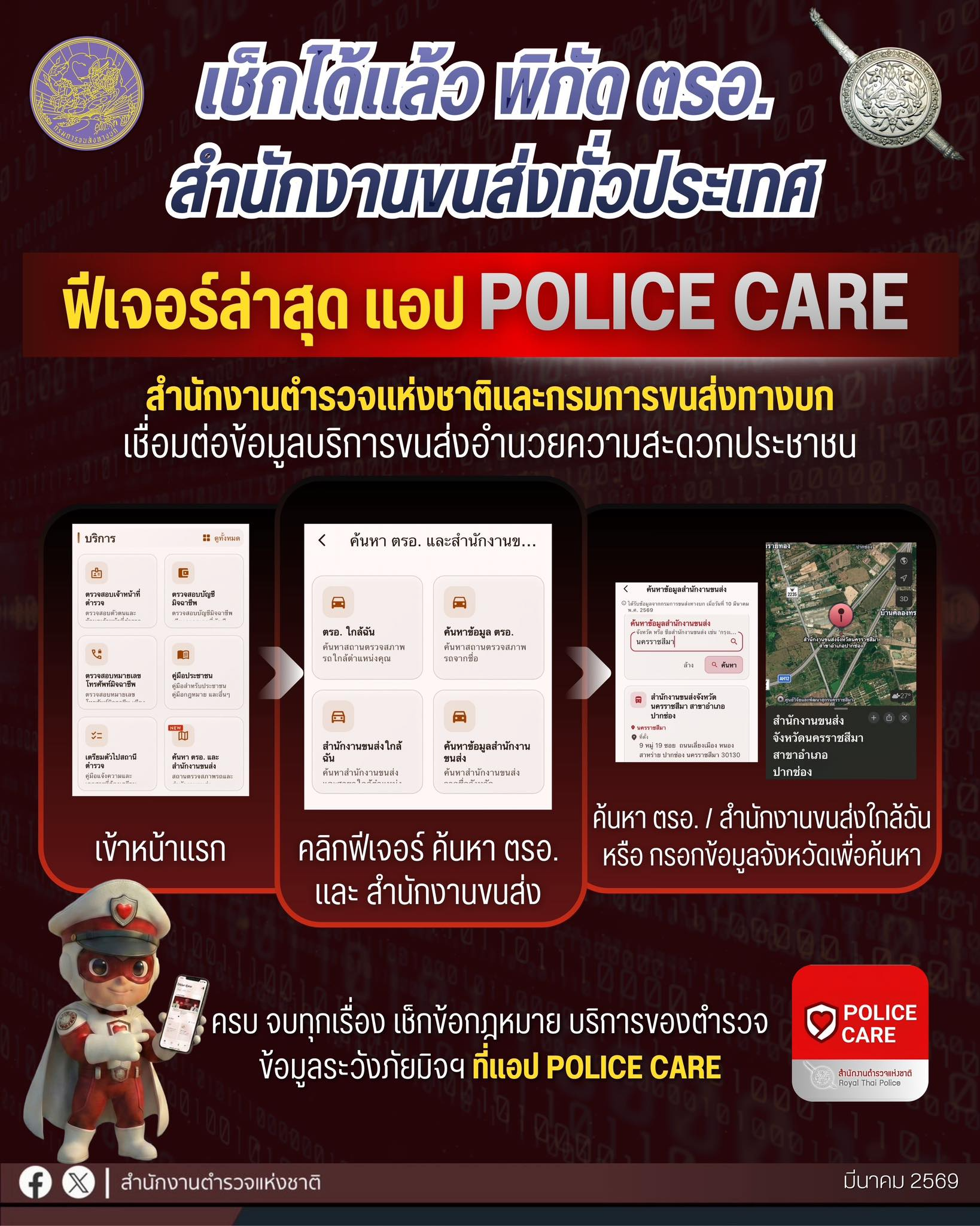 ฟีเจอร์ใหม่เพื่อคนใช้รถ “สำนักงานตำรวจแห่งชาติ” เชื่อมข้อมูล “ขนส่ง” แค่คลิก เช็กพิกัด ตรอ.-สำนักงาน
