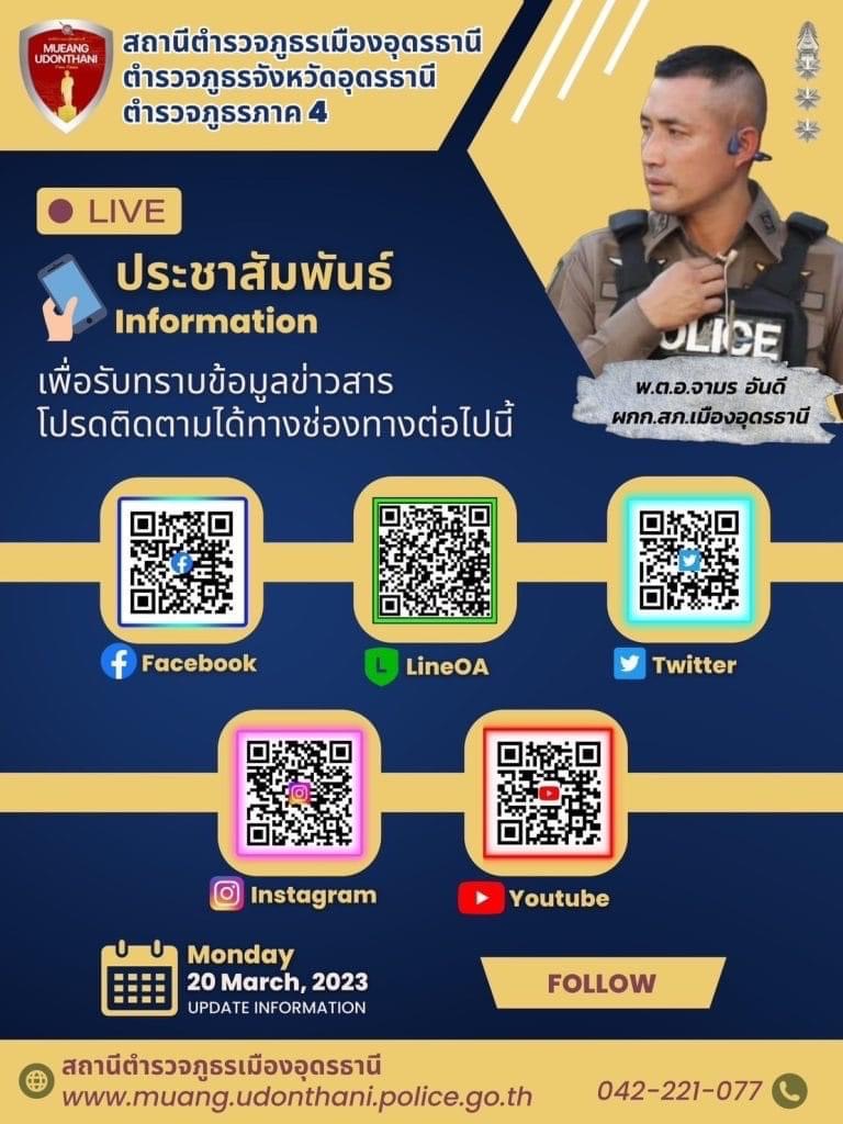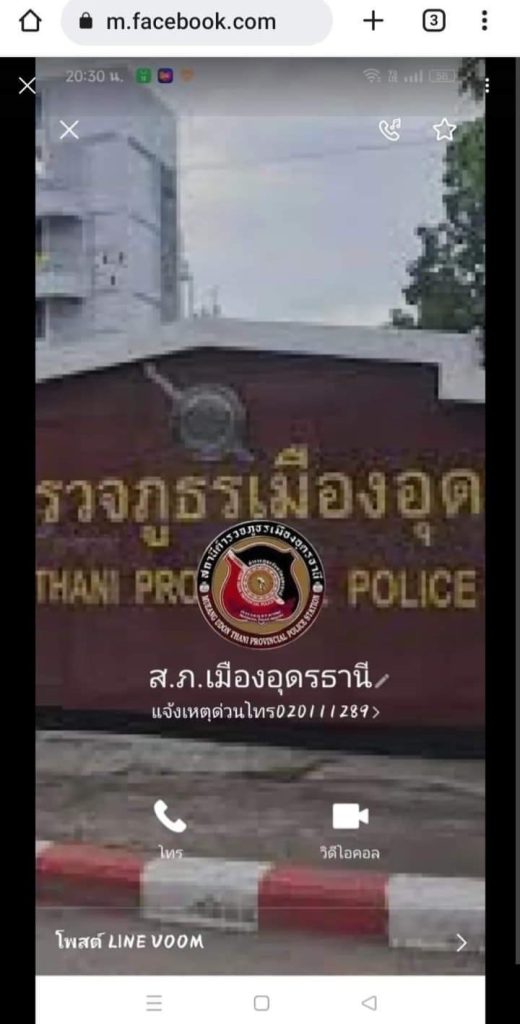 ติดต่อผ่านเว็บไซต์ https://mueangudonthani.udonthani.police.go.th