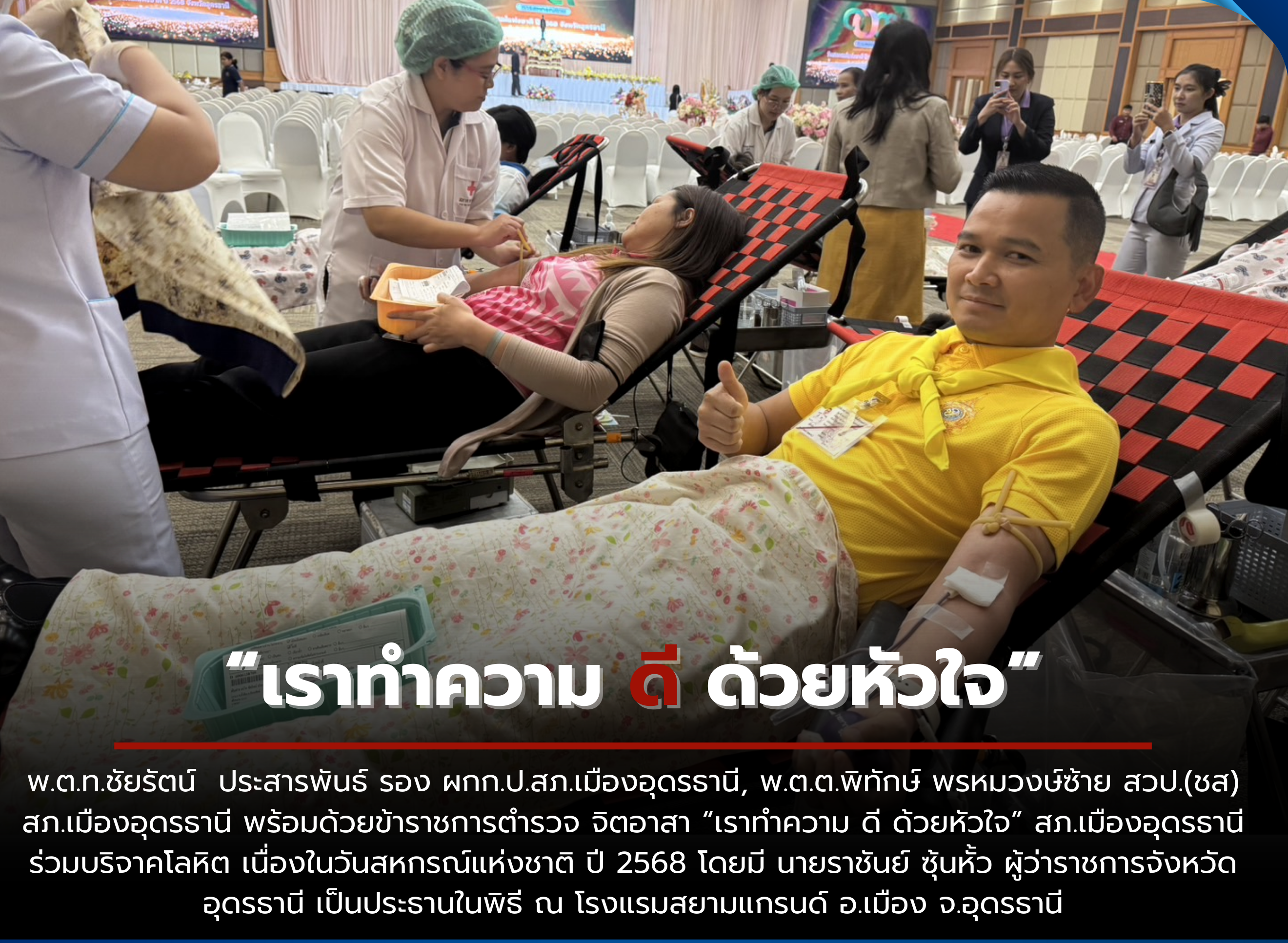 เมื่อวันที่ 24 กุมภาพันธ์ 68 เวลา 13:30 น. พ.ต.ท.นิธิศ รอดคลองตันรอง.ผกก.สส.สภ.เมืองอุดรธานี พร้อมด้