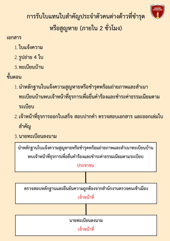 การรับใบแทนใบสำคัญประจำตัวคนต่างด้าวที่ชำรุดหรือสูญหาย